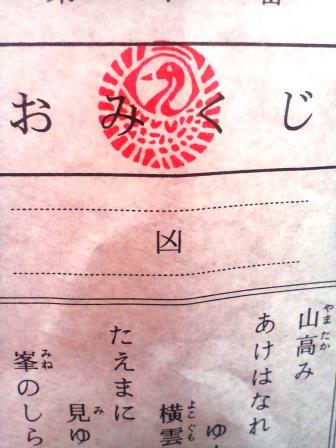 八幡宮でおみくじを引いて「凶」がでた。